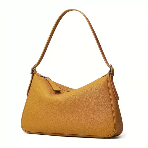 カジュアルな質感の無地ショルダーバッグ 女性ファッション ニッチ シンプル 人気 わき腹バッグ